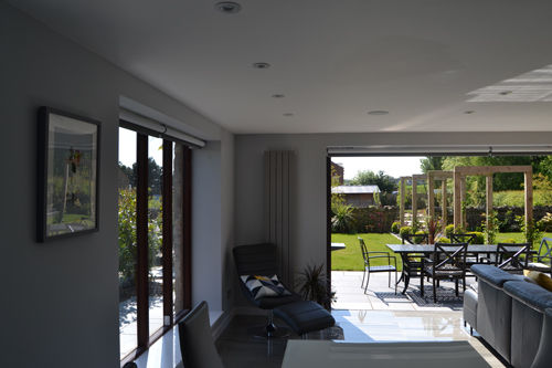The renovation included the removal of existing internal walls to transform a small kitchen into a large open space with dining, kitchen and living space. The integration of the additional doors and windows transformed the space into a larger, brighter enjoyable open space that connects with the outdoor space and garden.
